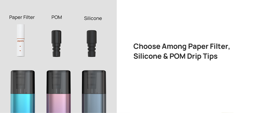 Διευρύνετε τις επιλογές σας ενσωματώνοντας είτε ένα αυθεντικό χάρτινο φίλτρο, ένα drip tip σιλικόνης ή ένα drip tip POM.